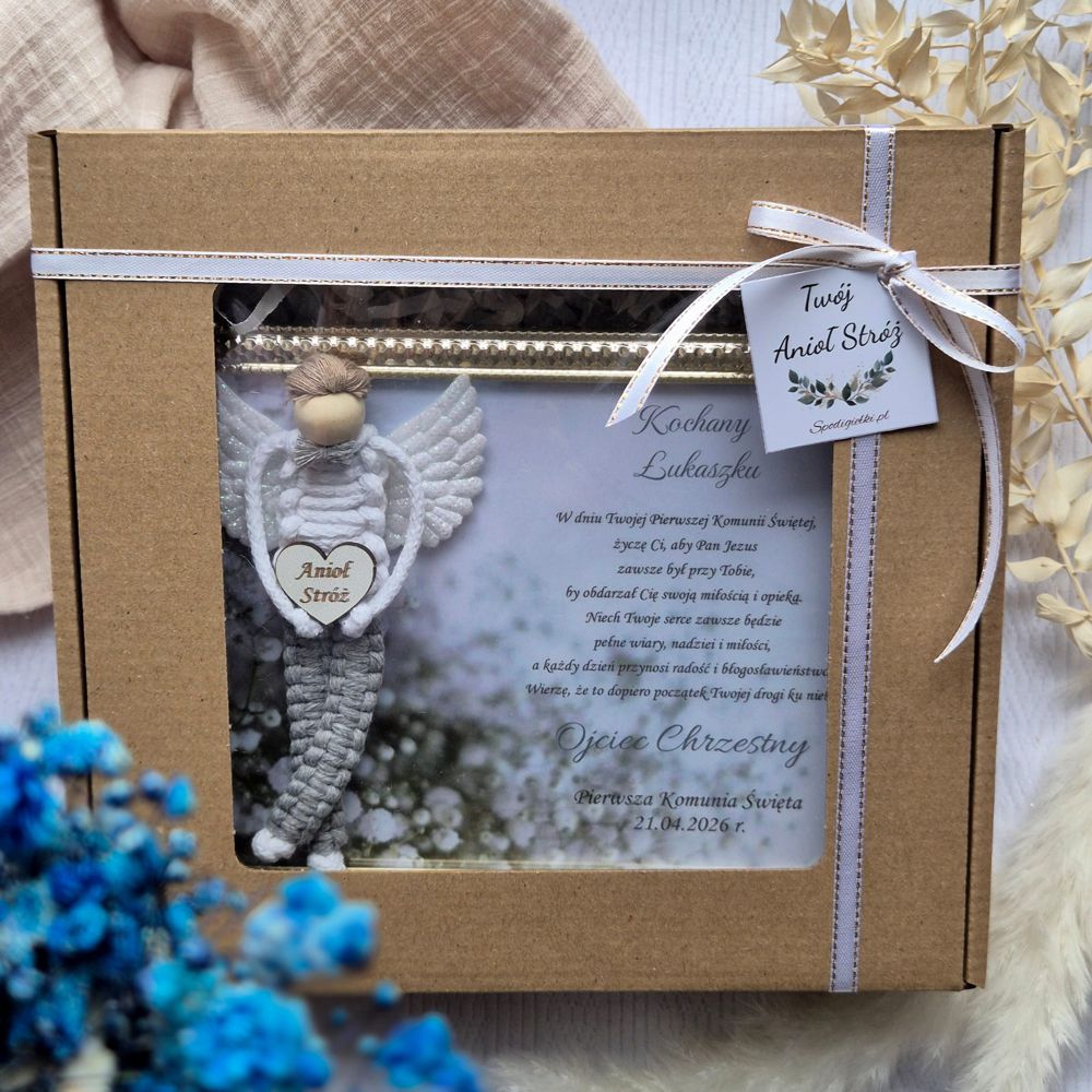 🤍 Podziękowanie na Komunię Świętą od chłopca – Anioł Stróż w ramce