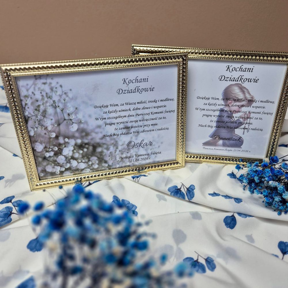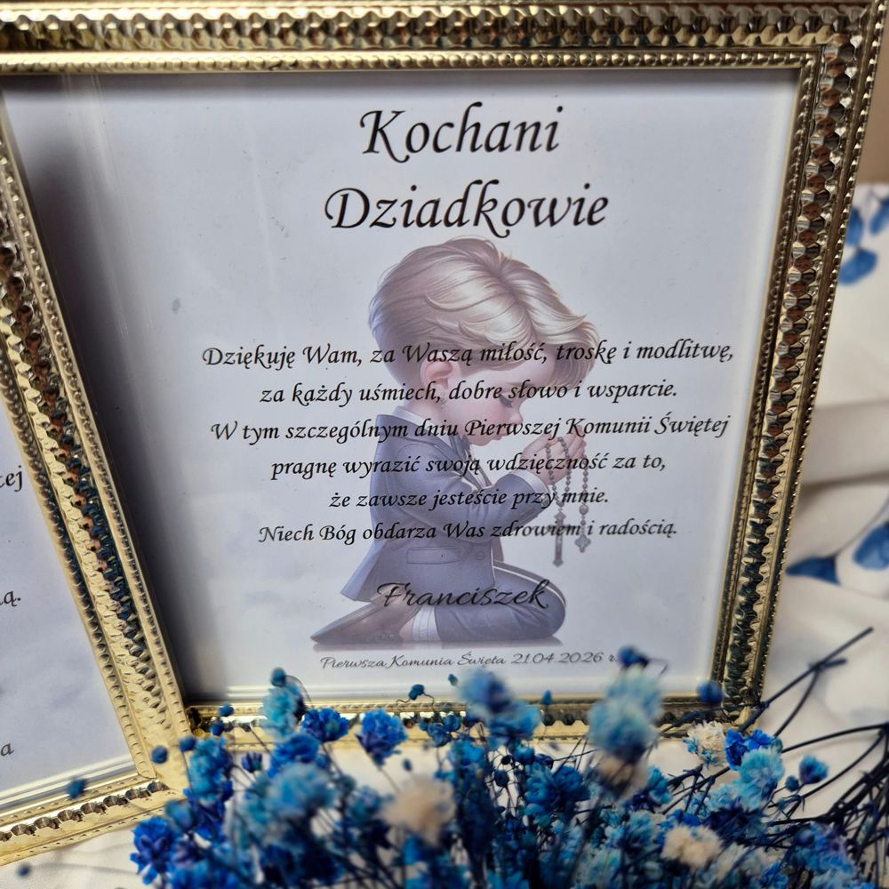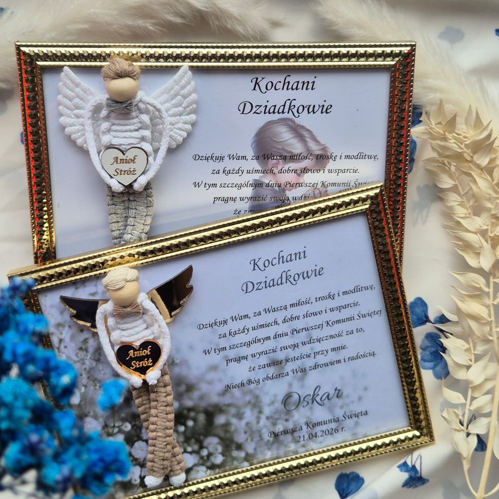 Napisz pierwszą opinię o „Anioł Stróż w złotej ramce – podziękowanie komunijne od chłopca dla Chrzestnych”