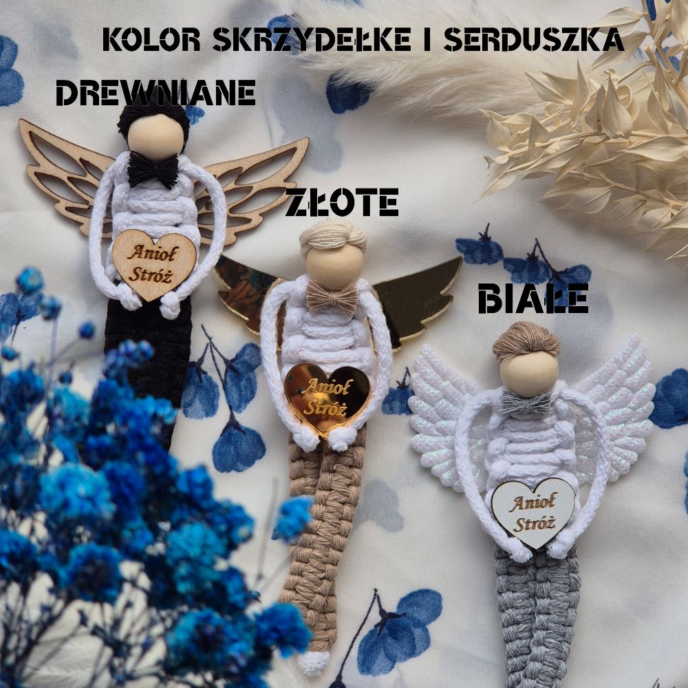 Każdy aniołek tworzony jest indywidualnie – z eleganckim, stonowanym strojem i klasyczną symboliką: